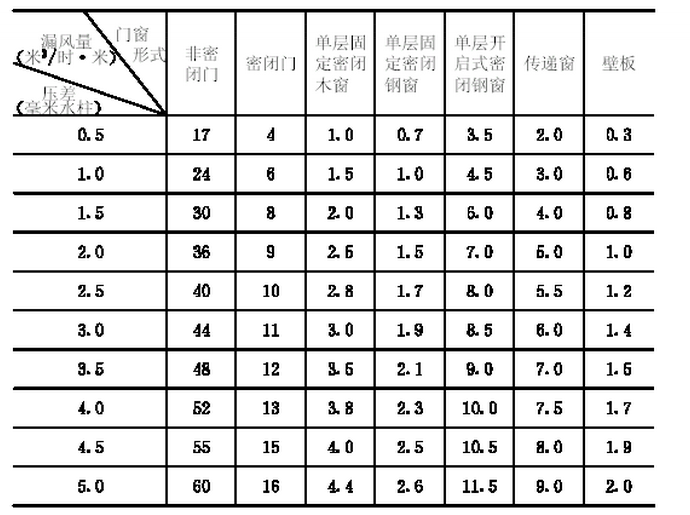 潔凈室維持不同的正壓值所需的正壓風量,宜按下式計算:`Q=A·SUM(Q·L)`